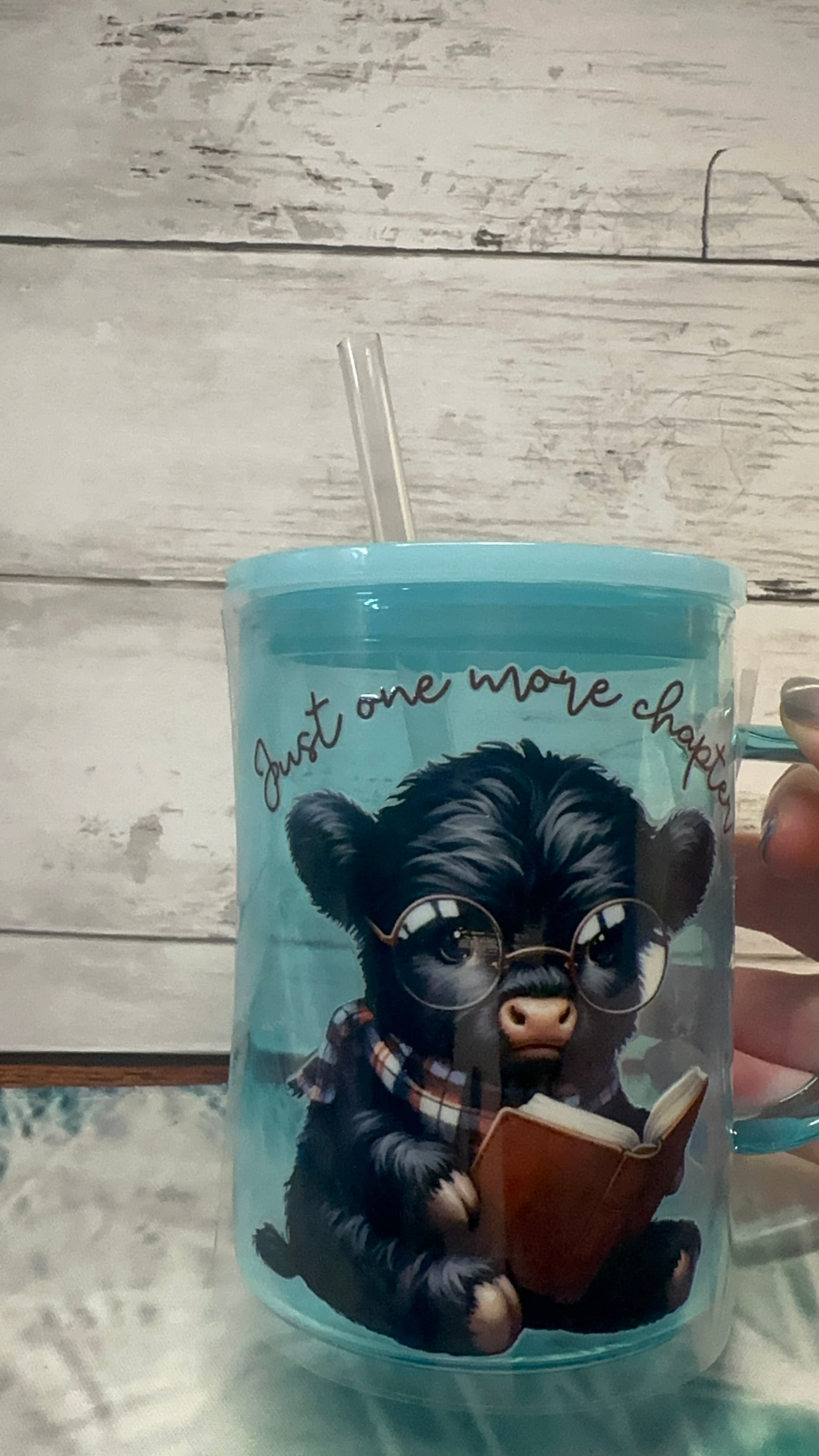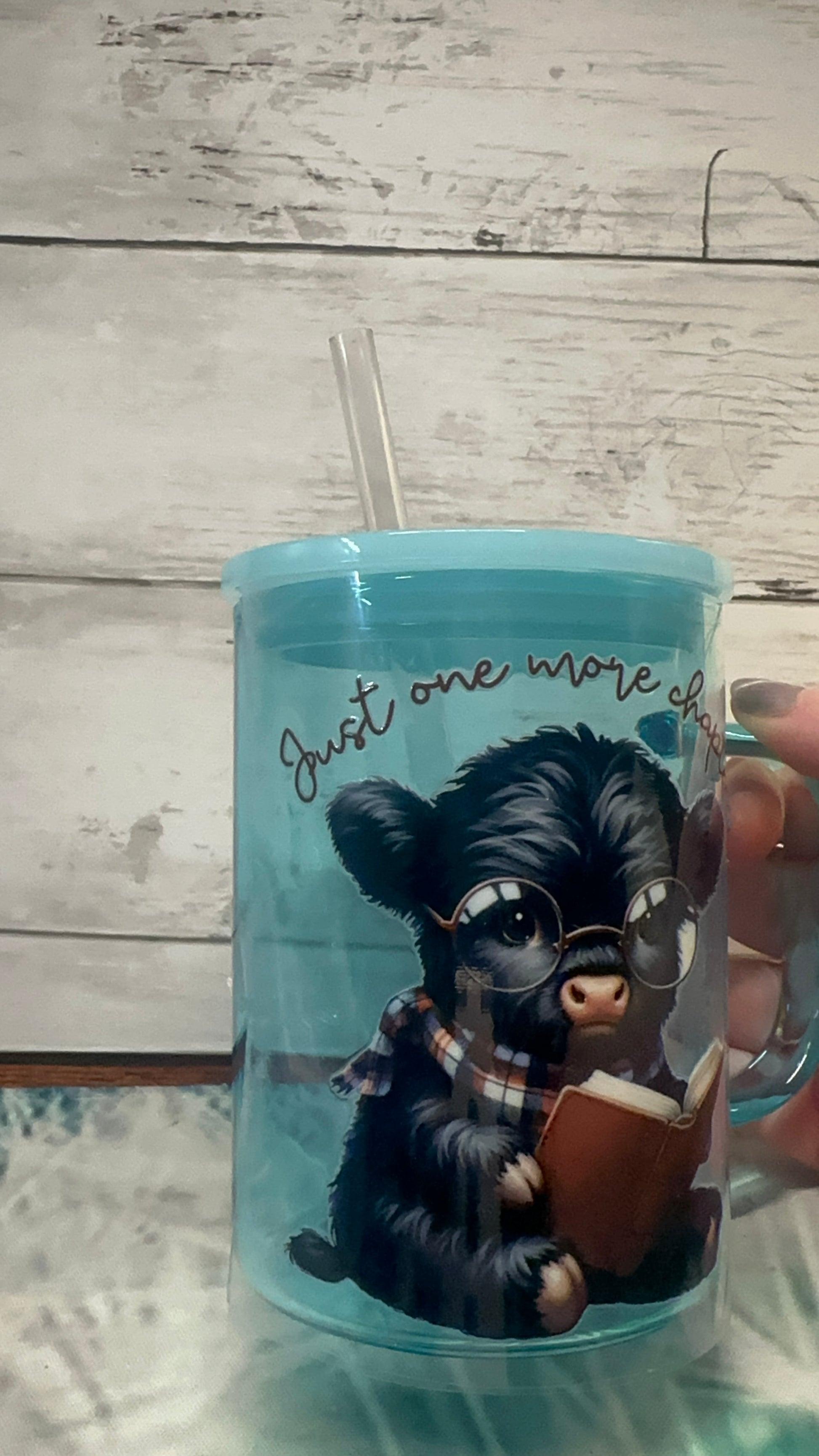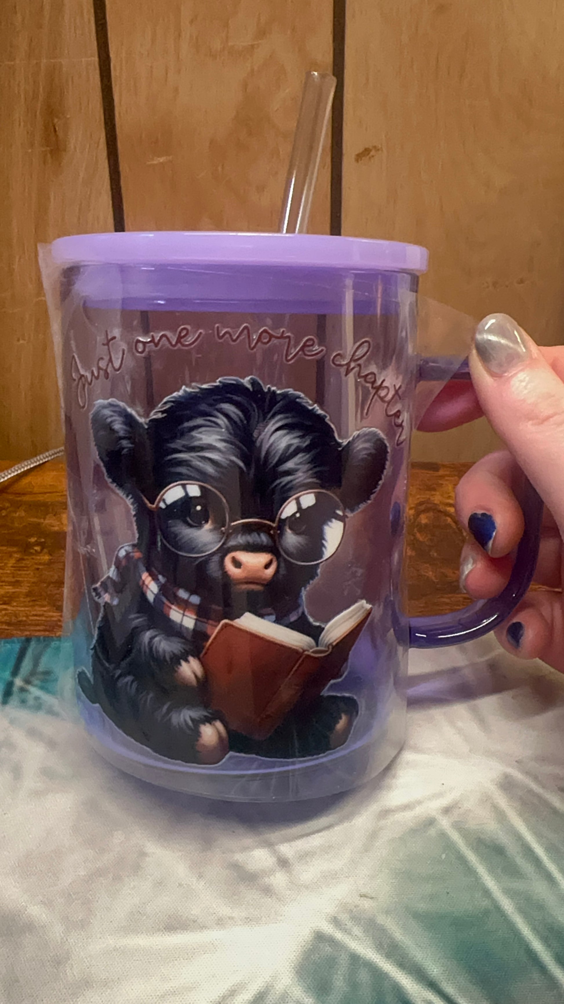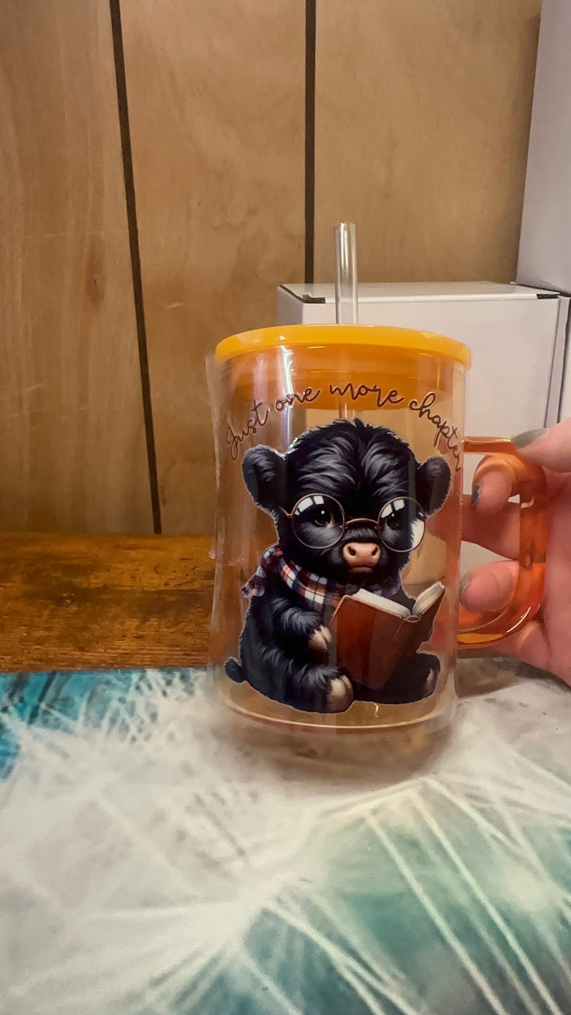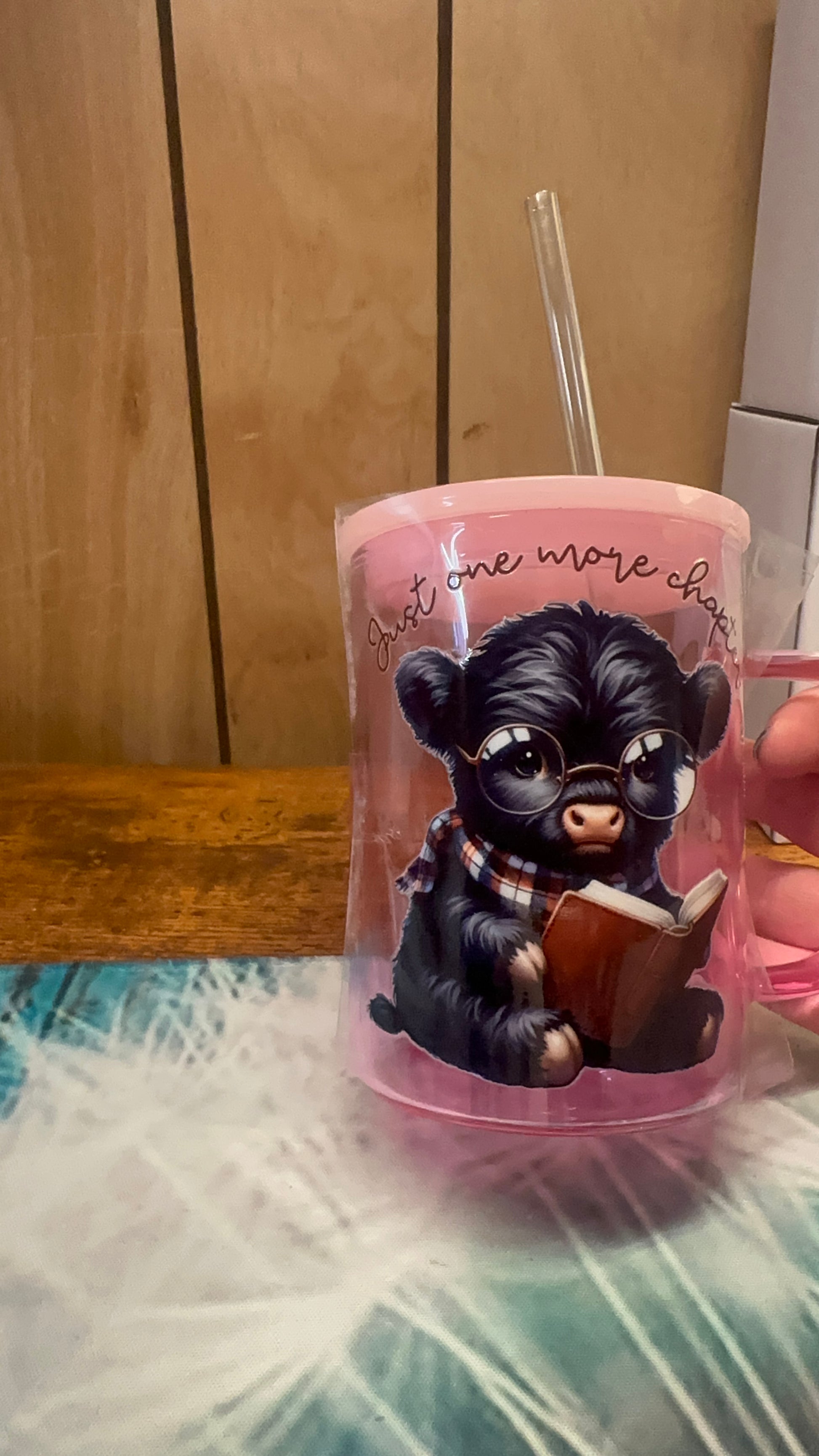"Never stop reading with Just One More! This book lover's dream features a black baby cow decal and UVDTF technology for a lasting cup decal. Keep turning pages (or swiping) with ease. (You won't be able to resist just one more chapter!)" purchase of cup required ( cups in photos not included.)